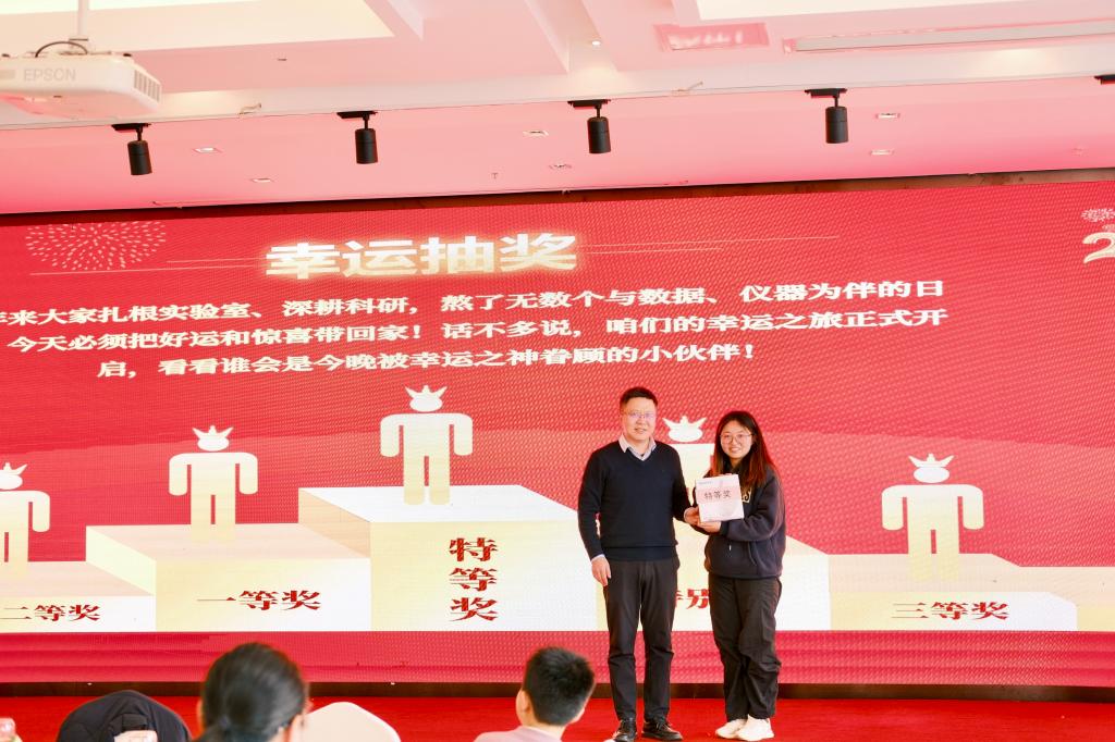 表彰过后,新春联欢环节正式开启,现场氛围瞬间升温,欢声笑语不绝于耳。为增添节日乐趣,中心精心准备了抽奖活动,设置了多样奖品,随着一个个幸运号码的揭晓,现场惊喜不断、欢呼连连,每一份奖品都承载着中心对全体师生的新春祝福,让大家在欢乐中感受到了团队的温暖。
